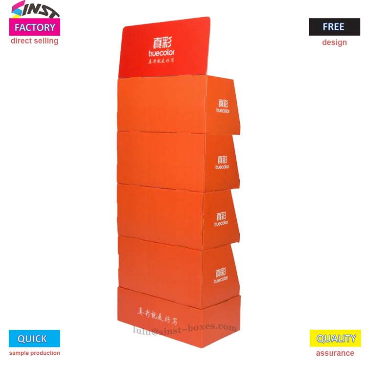 तुमचा टिश्यू बॉक्स नीटनेटका, व्यवस्थित आणि सुंदरपणे प्रदर्शित ठेवण्यासाठी आमचा नाविन्यपूर्ण पेपर टॉवेल्स कोरुगेटेड बॉक्स डिस्प्ले रॅक वापरा. हे बूथ उच्च-गुणवत्तेच्या नालीदार पुठ्ठ्याचे बनलेले आहे आणि उच्च संपृक्तता केशरी लाल विरोधाभासी डिझाइनचे वैशिष्ट्य आहे, जे त्वरित ग्राहकांचे लक्ष वेधून घेऊ शकते आणि टिश्यू आणि स्टेशनरी सुपरमार्केट शेल्फ् 'चे अव रुप आणि स्टेशनरी स्टोअर काउंटरवर वेगळे बनवू शकते. कारण जेव्हा ग्राहक 'दृश्यमान ब्रँड' आधी लक्षात ठेवतील तेव्हाच ते 'काय खरेदी करायचे' याचा विचार करतील.