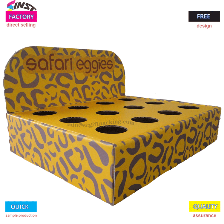 अंडीसाठी डेस्कटॉप कार्डबोर्ड डिस्प्ले रॅक हा अंडी उत्पादनांचे प्रदर्शन आणि प्रचार करण्यासाठी वापरला जाणारा प्रॉप आहे. हे सहसा पुठ्ठा सामग्रीचे बनलेले असते आणि ग्राहकांचे लक्ष वेधून घेत आकर्षक पद्धतीने अंडी प्रदर्शित करू शकतात. प्रदर्शनादरम्यान अंडी खराब करणे टाळा.