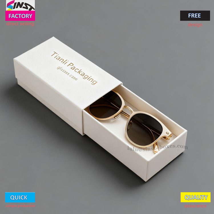 हा चष्मा गिफ्ट बॉक्स प्रत्यक्षात "ऑल-अराउंड प्लेअर" आहे: हा सहसा चष्मा संरक्षण बॉक्स असतो जो चष्म्याचे संरक्षण करतो, एक खोबणी डिझाइनसह जी चष्म्याचे पाय देखील सुरक्षितपणे धरते; बाहेर जाताना, ते पोर्टेबल ग्लासेस केस आहे, हलके आणि जागा न घेता वाहून नेण्यास सोपे आहे; कार्यालयात ठेवलेला, हा एक व्यावसायिक चष्मा आहे जो ब्रँडचे प्रदर्शन करतो आणि डेस्कटॉप टेक्सचर वाढवतो. मुख्य गोष्ट अशी आहे की ते "व्यावहारिकता" आणि "सौंदर्यशास्त्र" यांचे समतोल साधते - पांढरा बॉक्स बॉडी फॅन्सी नाही, सोन्याचा मजकूर अतिशयोक्तीपूर्ण नाही आणि तो बराच काळ वापरून थकणार नाही. ब्रँड चष्मा केस म्हणून, ते फक्त एक कंटेनर नाही तर "गुणवत्ता जीवन" चे एक लहान वाहक देखील आहे. वैयक्तिक वापरासाठी असो किंवा भेट म्हणून, ते लोकांना ही "साधी लक्झरी" लक्षात ठेवू शकते.