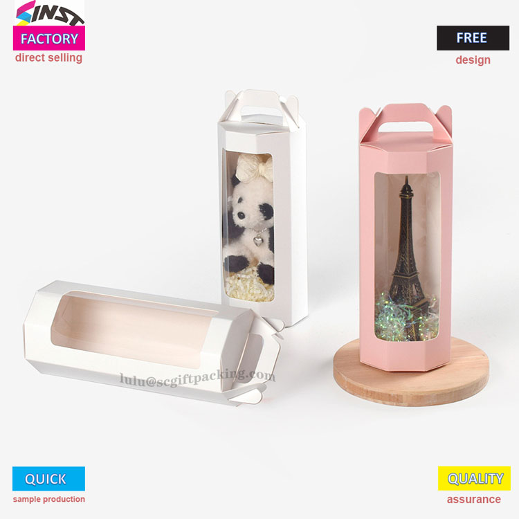हा विलासी हलका गुलाबी विंडो गिफ्ट बॉक्स बाहुल्या आणि फुले ठेवण्यासाठी योग्य आहे. मोहक बॉक्समध्ये फुले पाठविण्याच्या प्रवृत्तीने पारंपारिक फुलांच्या व्यवस्थेमध्ये सुसंस्कृतपणाचा स्पर्श जोडला आहे. फ्लॉवर विंडो बॉक्स विविध प्रकारच्या आकार, आकार आणि डिझाइनमध्ये येतात, उत्कृष्ट गिफ्ट बॉक्ससह फुलांचे मिश्रण करतात. टिपिकल बंद विपरीतफ्लॉवर फोल्डिंग विंडो गिफ्ट बॉक्स, यामध्ये बॉक्सच्या पृष्ठभागाच्या दोन तृतीयांश भागांवर समोर एम्बेड केलेली एक पारदर्शक विंडो वैशिष्ट्यीकृत आहे. सेलोफेनच्या माध्यमातून, त्यातील फुलांची रूपरेषा स्पष्टपणे दिसून येते - हा "फ्लॉवर विंडो गिफ्ट बॉक्स" आहे जो या गडी बाद होण्याचा क्रम आणि हिवाळा शांतपणे लोकप्रिय झाला आहे.