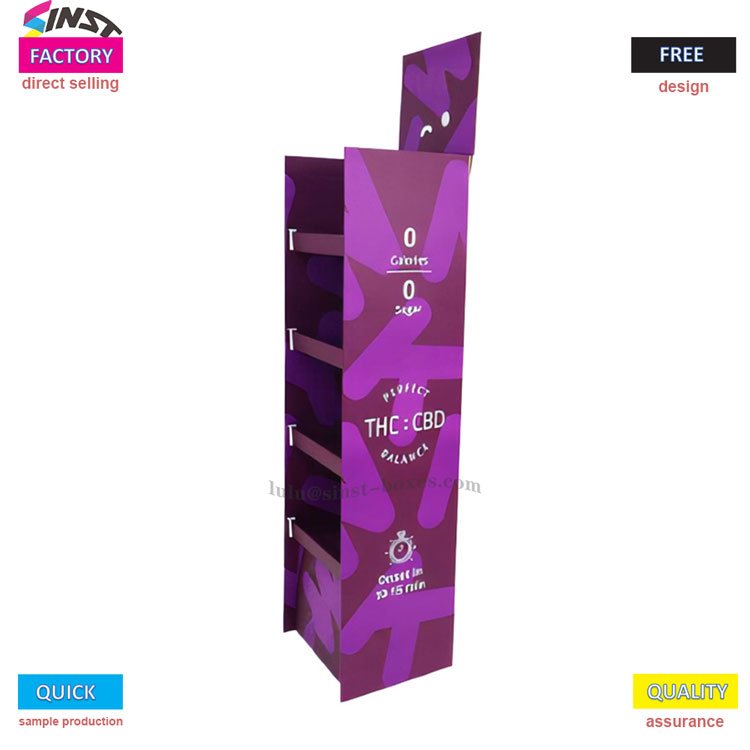 त्यात चांगले काय आहे? प्रथम, रंग काही खेळकर नमुन्यांसह चमकदार जांभळा आहे, जो कॅशियर किंवा शेल्फच्या पुढे ठेवला जाऊ शकतो आणि लगेच लोकांचे लक्ष वेधून घेतो; याव्यतिरिक्त, हे अनेक स्तरांमध्ये विभागलेले आहे, जे अनेक लहान वस्तू प्रदर्शित करू शकतात आणि जागा घेऊ शकत नाहीत, ज्यामुळे अधिक लोकांना स्टोअरमध्ये या लहान वस्तू पाहण्याची परवानगी मिळते; शिवाय, हे शेल्फ पुठ्ठ्याचे बनलेले आहे, जे खर्च वाचवते आणि पैशाची चिंता न करता लहान दुकानांना खरेदी करण्यास अनुमती देते; शेवटी, हे एका जुन्या कारखान्याने बनवले आहे जे 15 वर्षांपासून प्रदर्शन स्टँड तयार करत आहे. तुम्हाला हवी असलेली कोणतीही शैली तुम्ही सानुकूलित करू शकता आणि तातडीच्या ऑर्डरसाठी किंवा नमुना उत्पादनासाठी तुम्ही ते पटकन तयार करू शकता. आपल्याला ते एकत्र करण्यासाठी साधनांची आवश्यकता नाही, जे विशेषतः सोयीस्कर आहे.